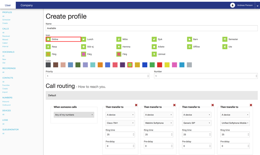 Predefined profile settings – Lunch, meeting, golf, etc.